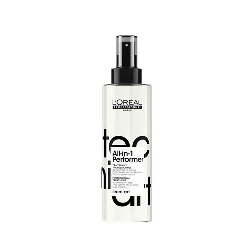 L’Oréal Professionnel Tecni.Art All-in-1 Performer Styling Treatment on hiuksiin jätettävä hoito- ja muotoilusuihke, joka tarjoaa 30 erilaista hyötyä yhdellä tuotteella. Kevyt koostumus helpottaa hiusten selvitystä, vähentää pörröisyyttä, suojaa lämpövaurioilta ja parantaa kiiltoa sekä hiusten hallittavuutta ilman latistavaa tunnetta. Suihke sopii kaikille hiustyypeille ja toimii tehokkaana pohjustajana ennen muotoilua. Käytä sellaisenaan kevyeen muotoiluun tai pohjustajana toisten muotoilutuotteiden alla.