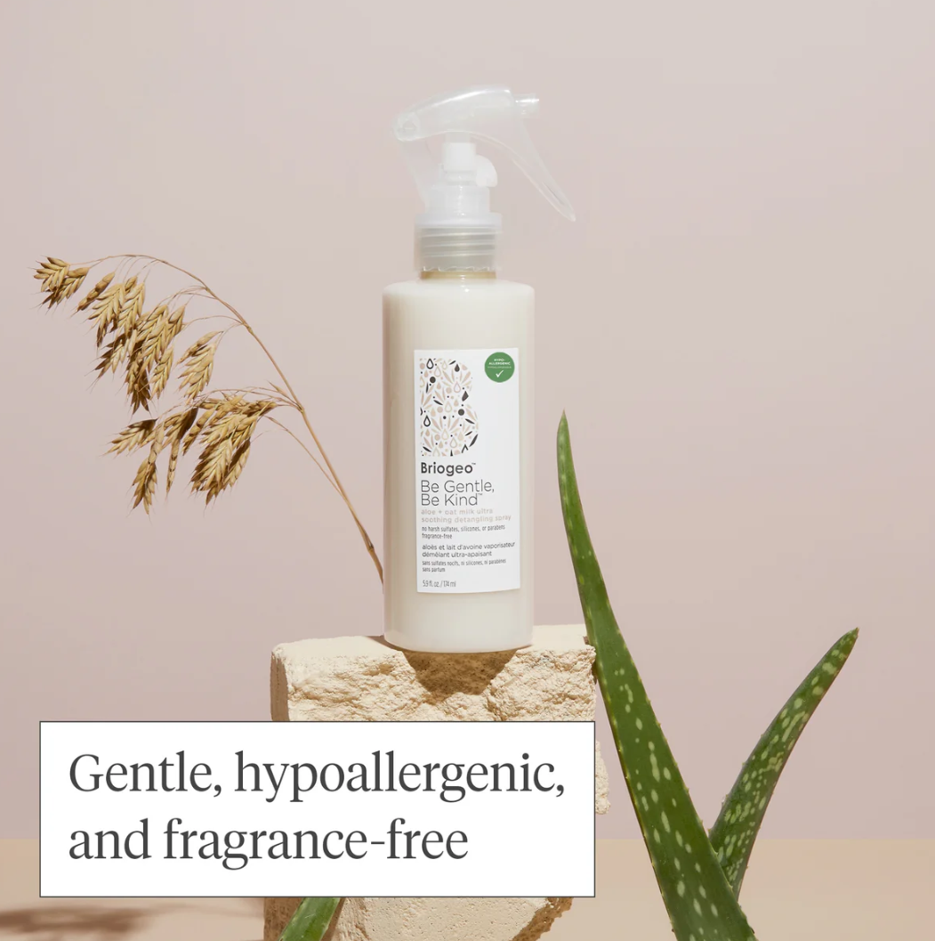 Briogeo Be Gentle, Be Kind™ Aloe + Oat Milk Ultra Soothing Detangling Spray sopii herkälle hiuspohjalle
